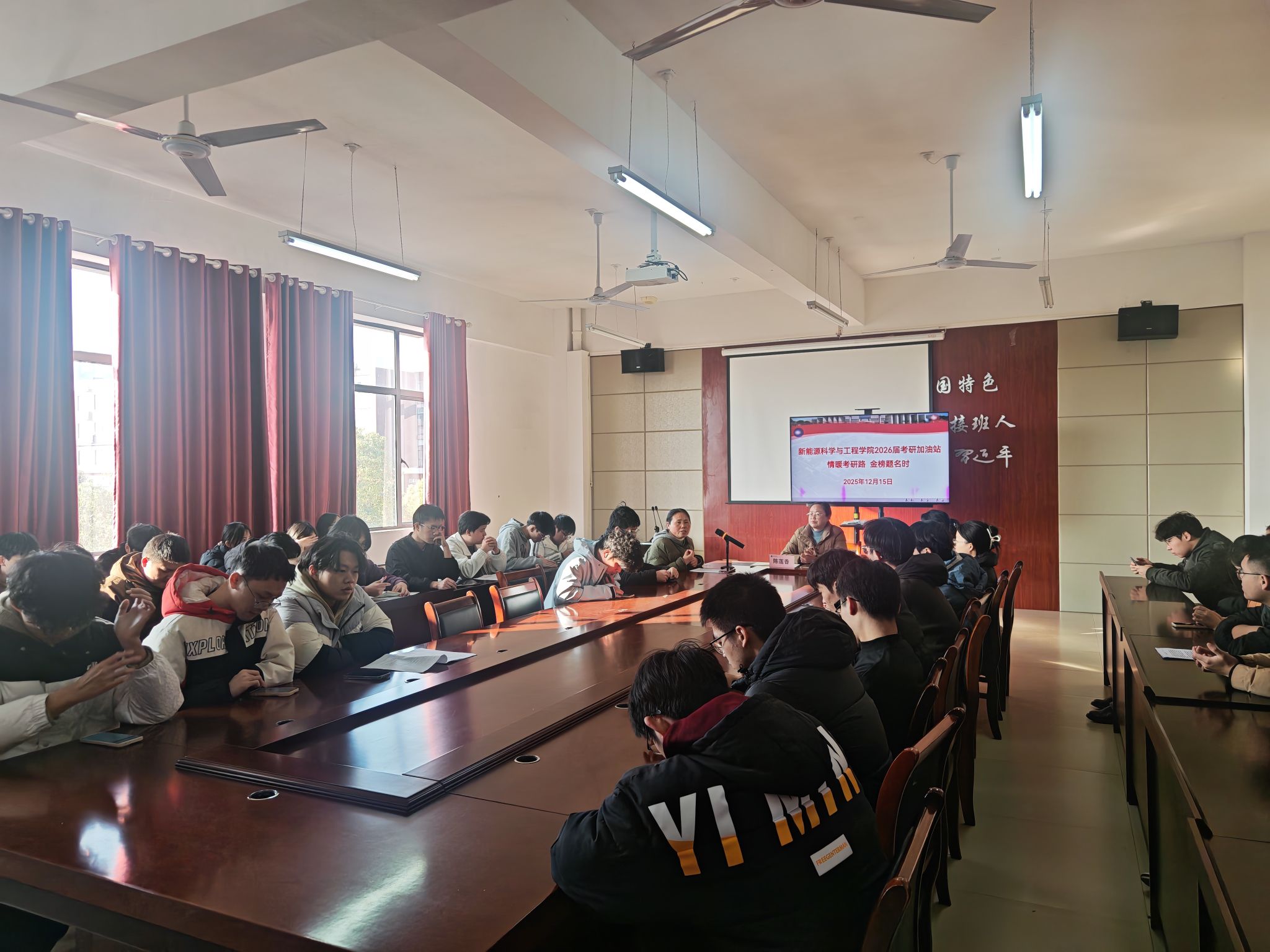 陈书记在讲话中强调:“考研是知识的深造,是能力的提升,更是意志的磨砺。你们选择考研,展现了新能源学子追求卓越、勇攀高峰的精神风貌。学院始终是你们最坚强的后盾。”她鼓励同学们保持积极心态,合理安排时间,注重效率与质量,让每一分钟都为梦想助力。陈书记还提到,新能源领域前景广阔,国家正大力推动绿色低碳发展,同学们的选择与时代脉搏紧密相连,期待大家未来成为行业领军人才。