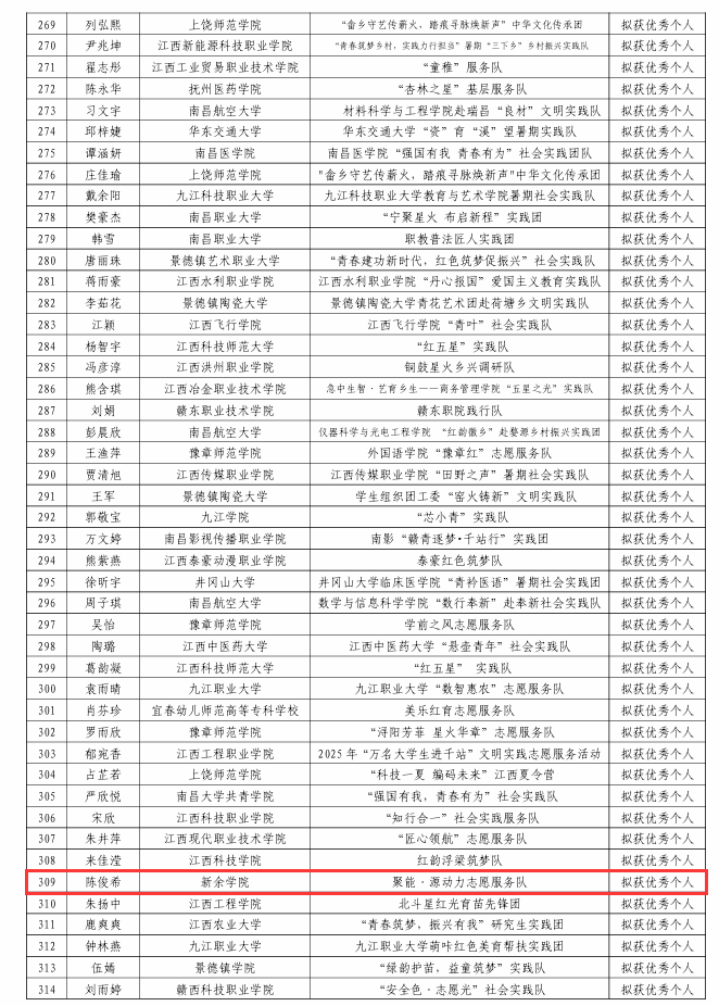 近日,根据共青团江西省委等四部门下发的《关于2025年江西省大中专员工志愿者暑期“三下乡”社会实践活动的通报》《2025年“万名老员工进千站”文明实践志愿服务行动优秀项目评选结果公示名单》,公司共有4个项目获得省级荣誉,其中优秀团队1支、优秀调研报告1项、优秀个人2人。