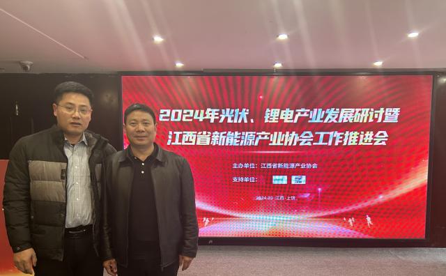 公司作为会员单位参加2024年光伏、锂电产业发展研讨暨江西省新能源产业协会工作推进会。江西省工信厅新兴产业处负责人郭银华、江西省能源局新能源和可再生能源处处长周晓渊、上饶市工信局张小龙局长到场致辞。协会会长陈康平总结回顾了协会2023年度主要工作,并与专家们共同研讨今年新能源产业新形势、新契机。协会还邀请了中国光伏协会副秘书长江华、国家领军人才、北京理工大学教授孙克宁专家纵论2024年光伏新能源产业发展大计和锂电产业发展思路。