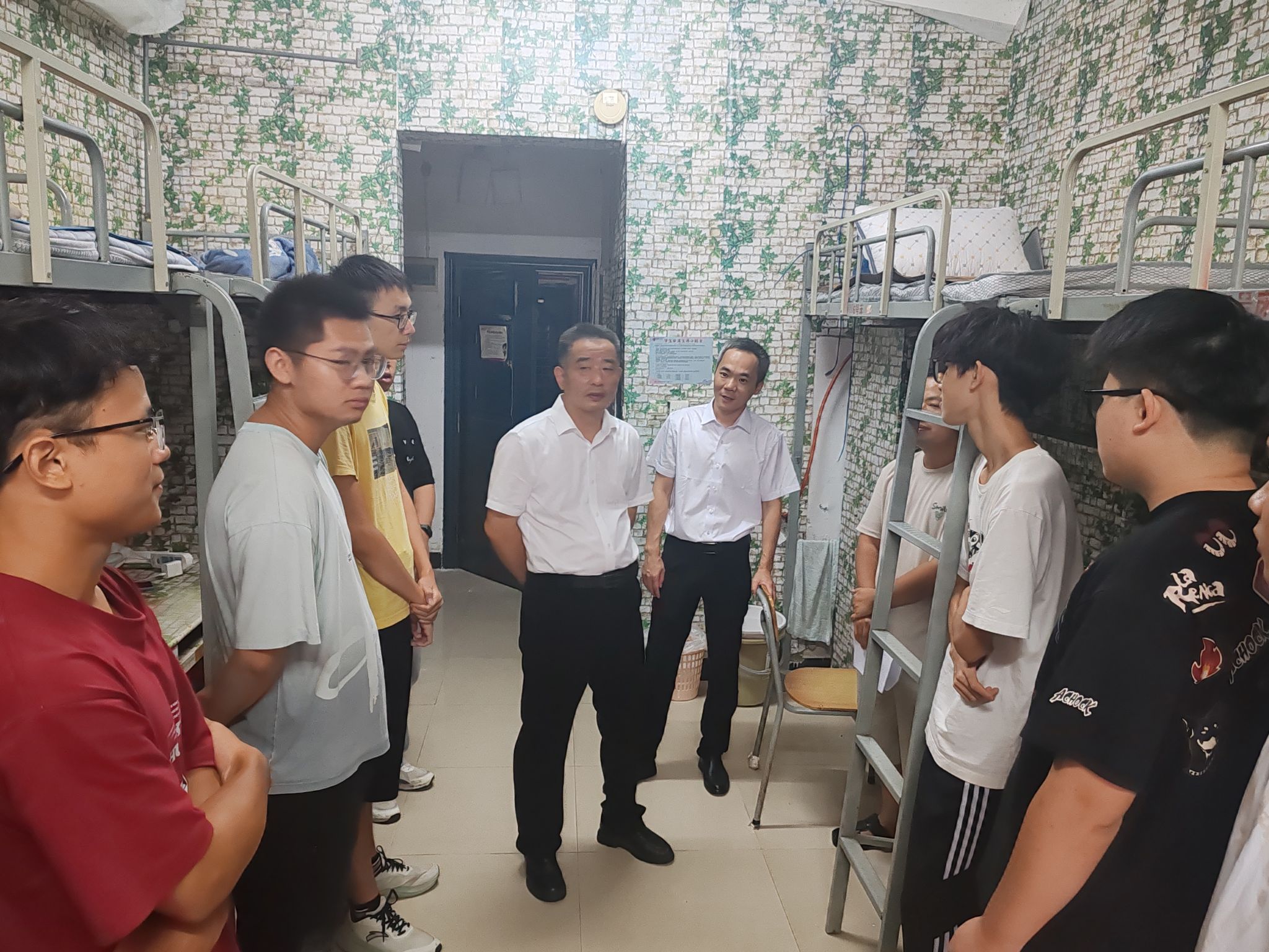 2025年9月3日晚,华灯初上,公司党委委员、副董事长刘力恒率学院领导班子及新生班主任,深入学院2025级新生宿舍开展走访慰问活动,为初入校园的新生送去关怀与鼓励,助力他们快速融入老员工活。