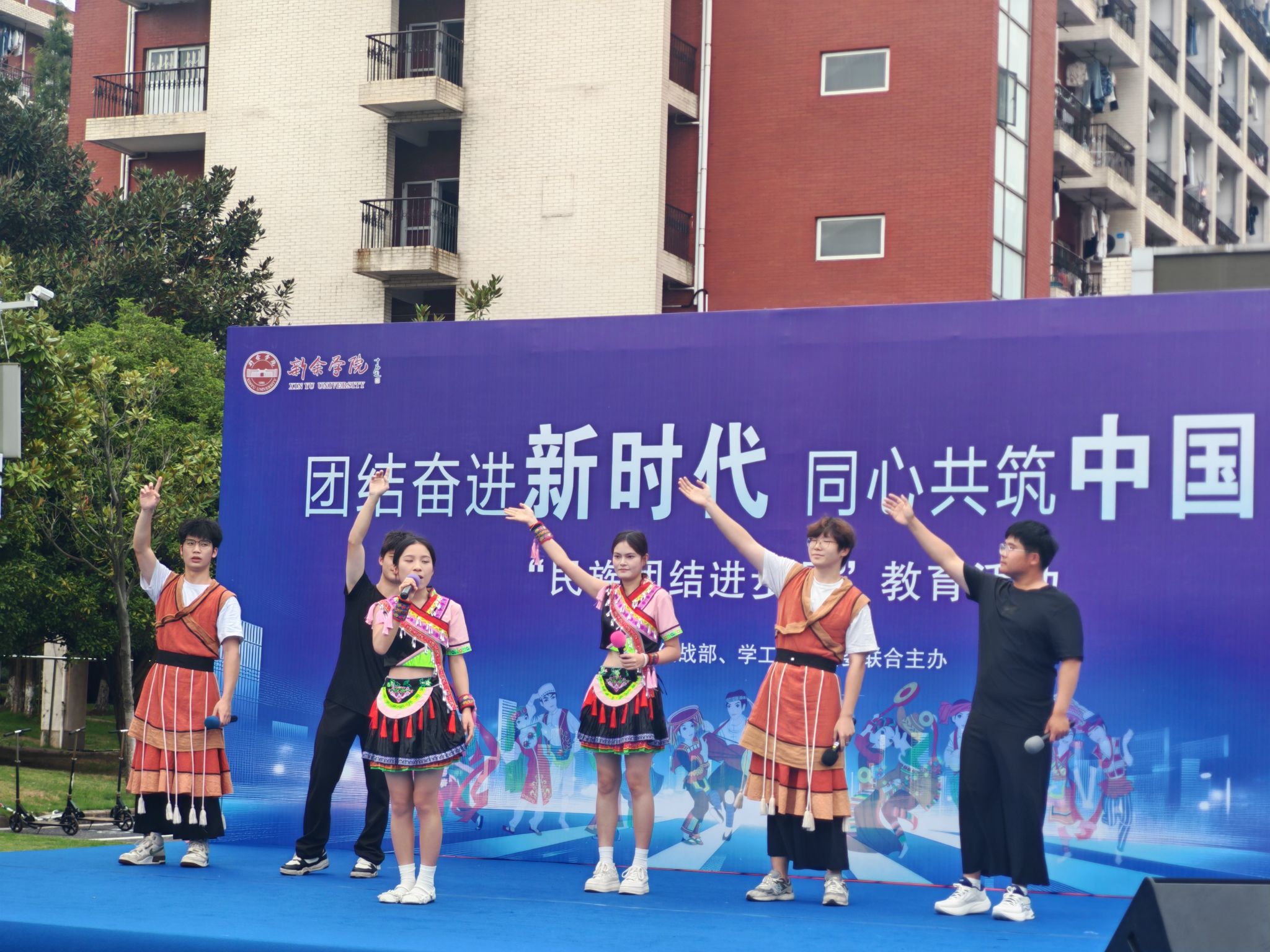 9月23日下午,“团结奋进新时代 同心共筑中国梦”民族团结进步月教育活动如火如荼开展,阵阵欢笑声与文化气息为校园铺满了民族交融的烟火气,同学们热情洋溢地投身于这场民族文化盛宴的每一个环节。