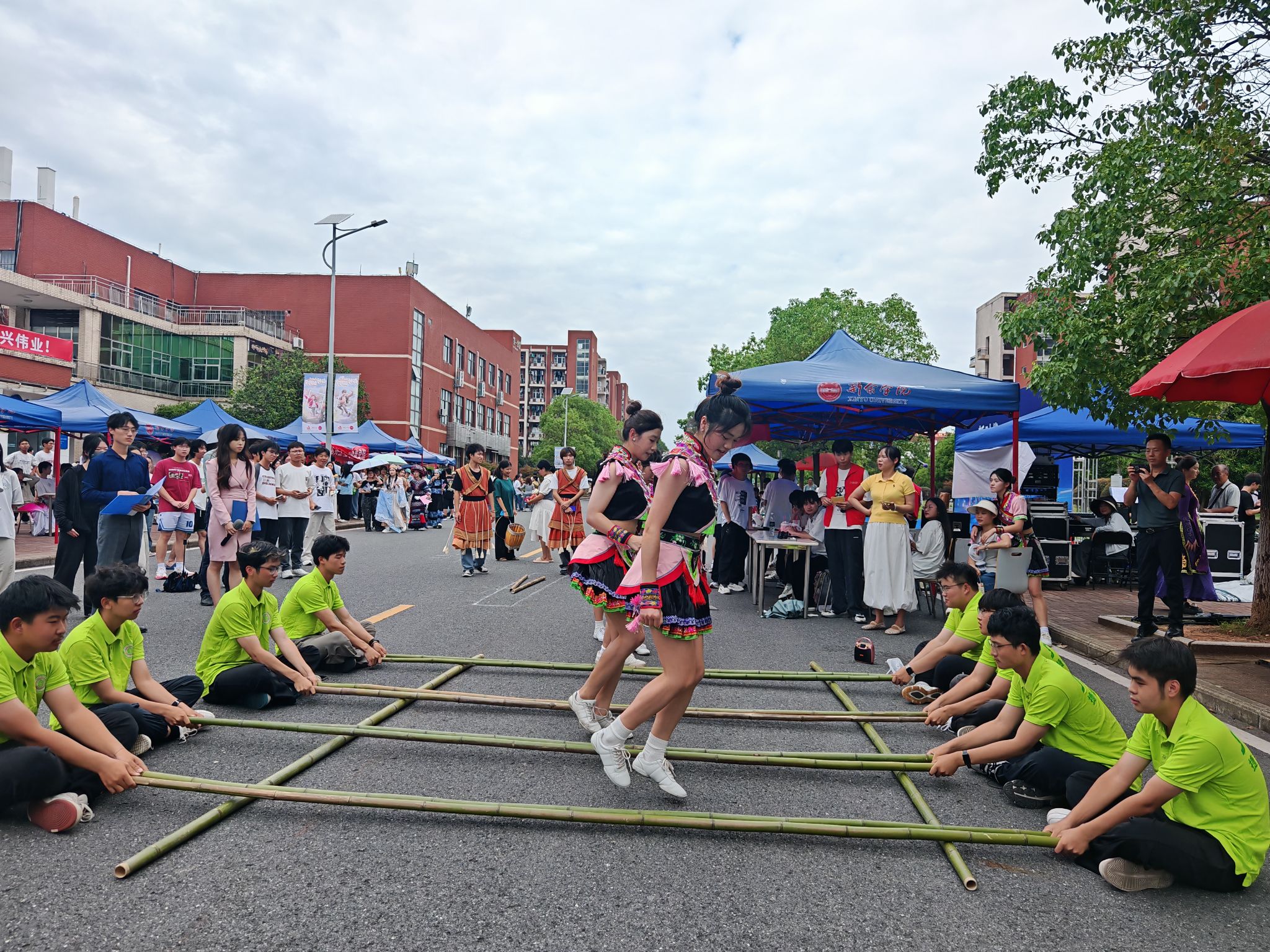 舞台之外,学院支起的活动帐篷更是热闹非凡。同学们在“摘柿子”游戏里模拟民族传统劳作、在“竹竿舞”的明快节奏里体验非遗活动的活力、在“操扛”竞技中比拼力量与默契…通过参与一个个特色活动,同学们解锁了不同民族文化的独特魅力。