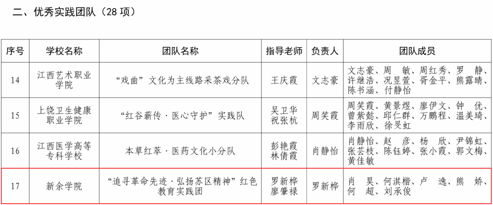 近日,省委教育工委、省教育厅等部门关于“牢记嘱托强国有我 行走赣鄱感恩奋进”江西省高校学子暑期大思政实践活动的评选结果正式公布,由公司罗新桦、廖肇禄老师指导的“追寻革命先迹·弘扬苏区精神”红色教育实践团获优秀实践团队称号。