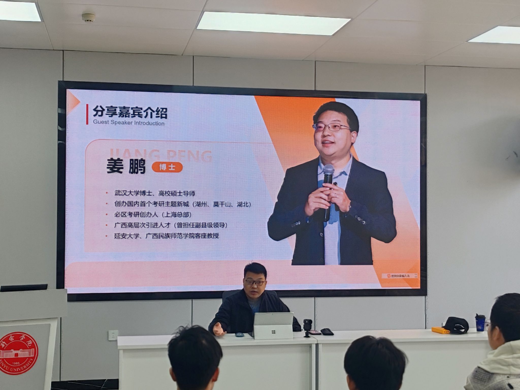 为助力公司学子高效备战考研复试,3月16日上午,学院特邀武汉大学博士、知猫人才及必区考研创始人姜鹏博士,在17栋104员工沙龙室举办考研复试指导讲座。