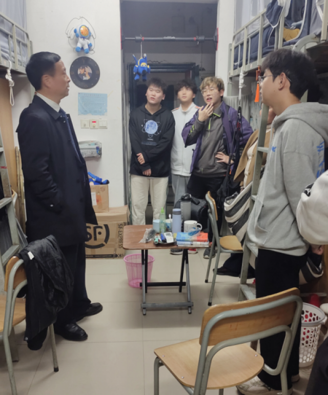晚饭后,张玉清来到联系宿舍看望员工,与同学们亲切交流,了解同学们的思想、学习和生活情况。他认真倾听员工在学习和生活上遇到的困难和问题以及对学校各方面的意见和建议,并就相关问题进行解答,表示学校会加强人文关怀,积极回应员工需求,营造良好的舒适的学习和生活氛围。