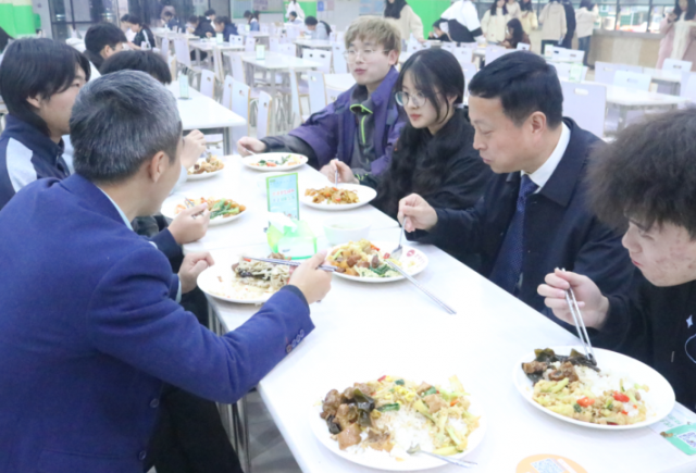 随后,张玉清与联系老师、联系员工共进晚餐,畅聊学习、生活。可口的菜肴、亲切的问候、灿烂的笑容,席间同学们畅所欲言,师生们贴心交流,在和谐融洽的氛围中让学校了解同学们的实际需求,倾听他们内心的声音。