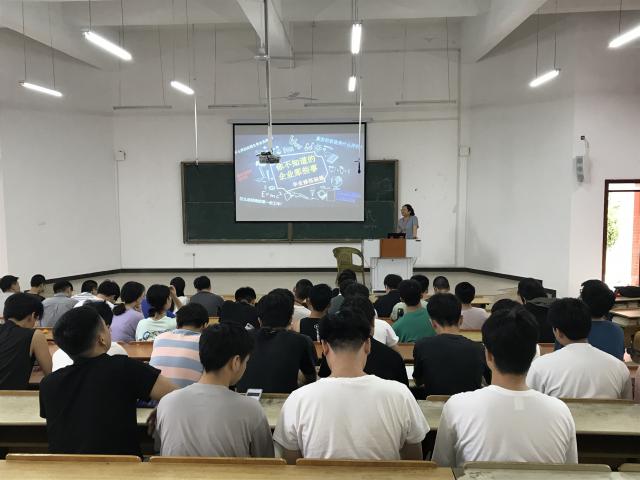 史总以“你不知道的企业那些事”为主题,首先向同学们介绍了目前毕业生面临的的就业形势,之后结合自身工作经历从企业文化、真实的职场是什么样的、怎么选择第一份工作、面试问题的潜台词、面试失败的各种原因以及什么样的应届生受企业欢迎等为同学们做了精彩的报告。最后答疑环节,在场同学就企业选择、职业规划等方面提出疑问,史总逐一进行解答,现场气氛十分热烈。