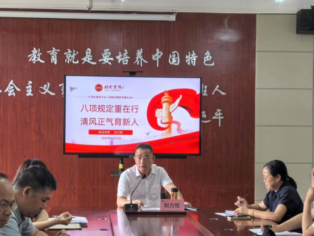 为深入贯彻落实中央八项规定精神,加强党的作风建设,推动公司产品工作高质量发展,6月24日下午,公司党委委员、副董事长刘力恒以《八项规定重在行清风正气育新人》为主题,在356体育在线官网会议室为分管部门科级以上领导干部和挂点学院全体教师讲授深入贯彻中央八项规定精神学习教育专题党课。