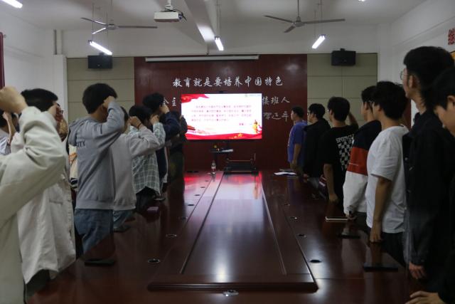 最后,员工会主席蔡少伟带领全体成员重温入团誓词,铿锵誓言,传递着大家为同学服务的坚定决心。