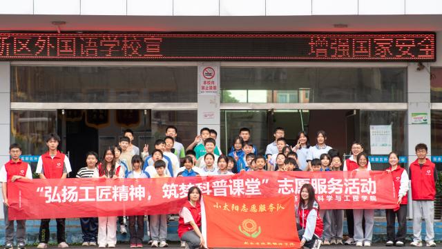 ​​为深入学习贯彻习近平总书记关于青年工作的重要指示,提升团员青年社会责任意识,强化社会实践能力,在“五一”劳动节来临之际,356体育在线官网“小太阳”志愿服务队前往高新区外国语学校开展了“弘扬工匠精神,筑梦科普课堂”志愿服务活动。