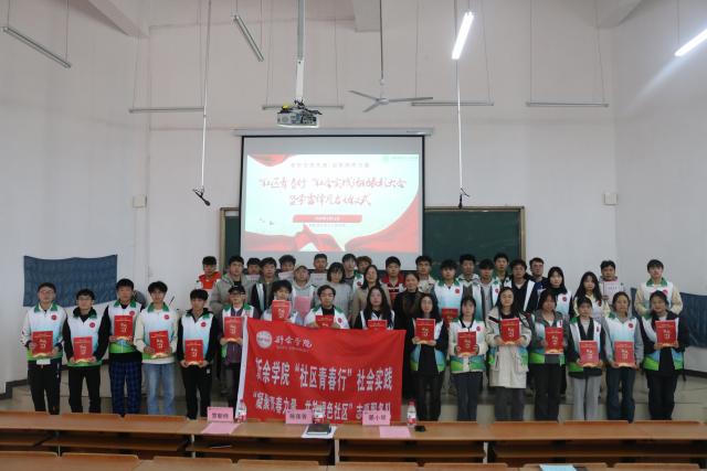 大会第三项,学院陈莲香书记、罗新桦副书记为受表彰同学依次颁发荣誉证书、感谢信,代表学院向每位志愿者表示衷心感谢,谢谢他们对于“社区青春行”社会实践活动的付出和努力,最后大家一起合影留念。