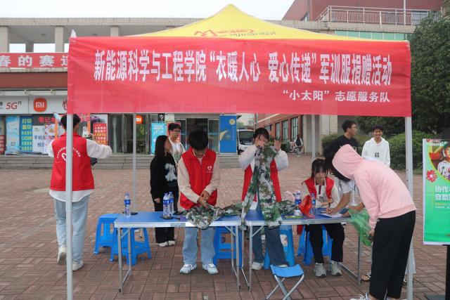 为弘扬中华民族勤俭节约的优良传统,贯彻绿色发展理念,提升青年员工的社会责任感,弘扬“奉献、友爱、互助、进步”的志愿精神,10月14日至15日,356体育在线官网员工会实践部携“小太阳”志愿服务队,在11栋宿舍楼下、建行门口开展“衣暖人心,爱心传递”军训服捐赠活动。