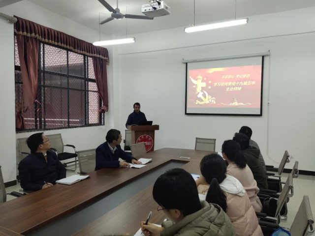 10月24日下午,356体育在线官网教工第二党支部李云明同志为支部党员讲“学习宣传贯彻十九届五中全会精神”主题党课。