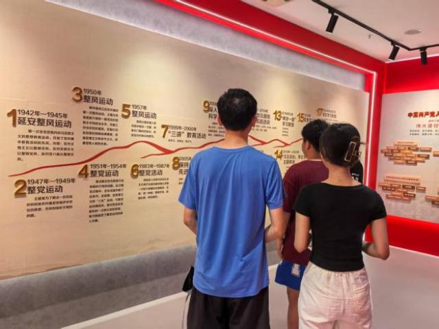 活动中,师生党员依次参观基地内“立党为公,执政为民”、“风清气正,立德树人”等主题展区。在文化墙前,大家驻足观看,从传统经典语句中感悟修身立德内涵;于党史教育板块,深入了解延安整风运动、整党运动等党的思想建设历程,回溯党的自我净化、自我完善的历史经验。